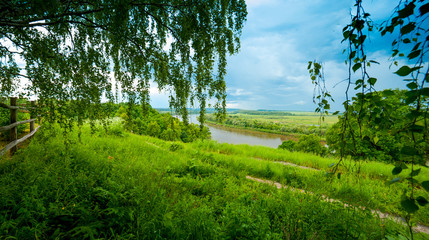 Epic landscape looks like Altai with  mountains, river and green forest, travel concept