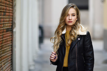 Elegant beautiful winter woman portrait. Copy space. Close up