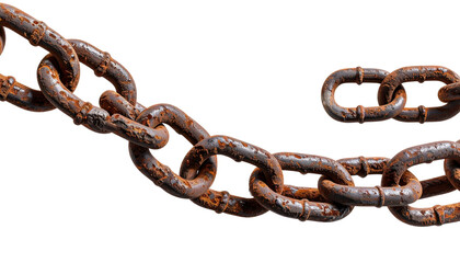 Rusty chain with a padlock for closing doors, gates, buildings - on isolated transparent background.