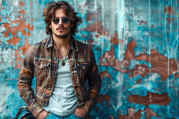 Vintage-Clad Artist Walks with Leather Portfolio Case on a Rust-Decorated Street