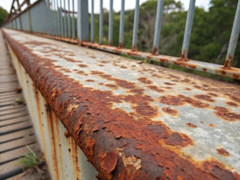 A closeup shot of rusted metal beams being reinforced with new steel plates emphasizing the contrast between old and new materials in a bridge renovation project.
