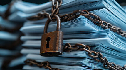 Detail of an old rusty metal chain anchored to a concrete block - toned image