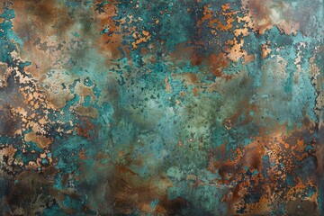 Oxidized copper background. copper oxide patina. natural texture copper material.green and blue copper patina..