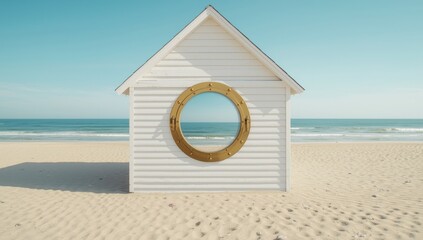 Seaside cottage showing brass porthole window, coastal architecture, Earth Day