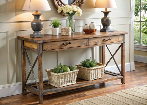 farmhouse furniture rustic country decor vintage modern wooden console table with metal accents distressed finish