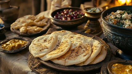 Rustic Table Filled with Mediterranean Meze and Fresh