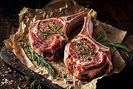 Rustic culinary preparation with raw beef burger patty and fresh vegetables