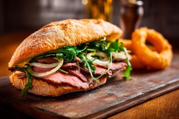 Artisan pretzel roll and baking ingredients create a rustic gourmet moment
