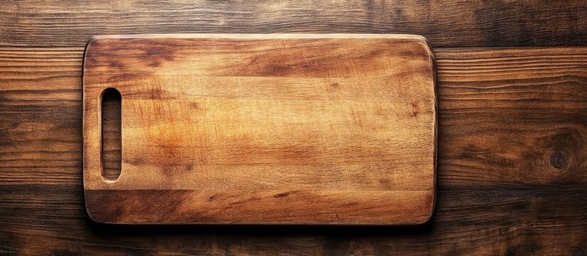 Rustic kitchen knife and wooden chopping board on wooden table