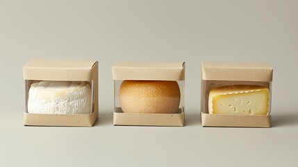 Artisanal cheese packaging with a rustic look and a window to showcase the product inside. , Minimalism,