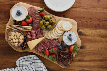 Cutlery tied with ribbon on rustic wooden table for holiday setting