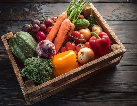 Farm vegetables in wood crate