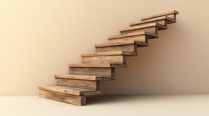 A rustic set of wooden stairs with a natural finish, isolated on a soft beige background