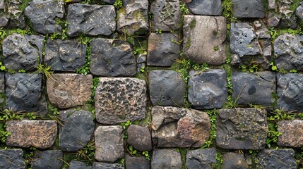 Old Cobblestone Pavement with Moss
