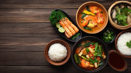 Baking ingredients arranged on rustic wooden surface