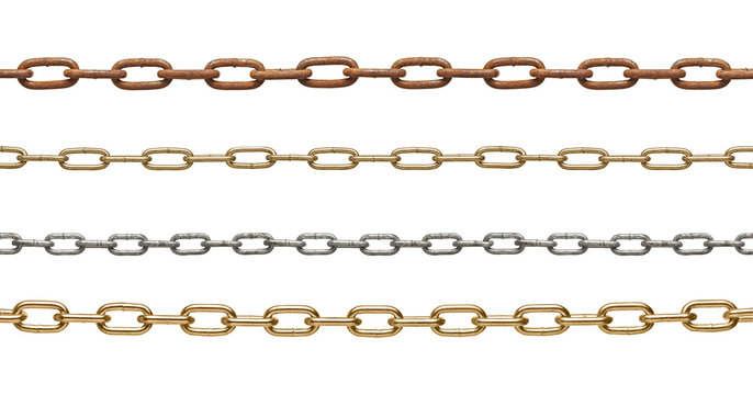 Close-up of rusty metal chain links with textured surface and industrial aesthetic