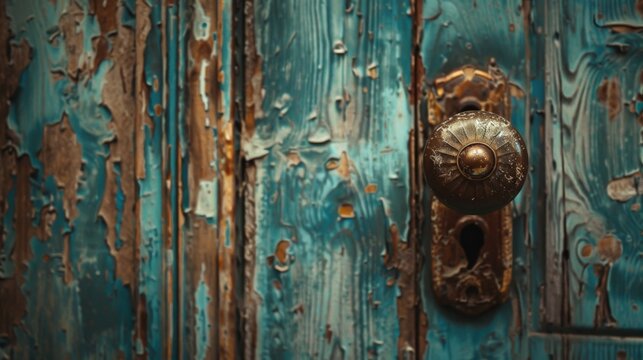 Closeup shot of a rusty doorknob on an old wooden door