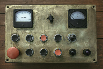 Close up Old rusty generator engine.  black and white photo