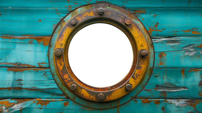 fire department training center close up details old rusty metal wall with round ship window. Website header. Creative Banner. Copyspace image