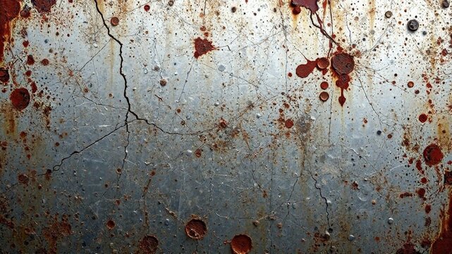 Close-up of weathered and corroded metal surface with rust particles