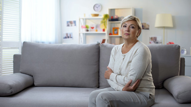 Frustrated grandmother sadly looking in camera, soul pain, sorrow or depression