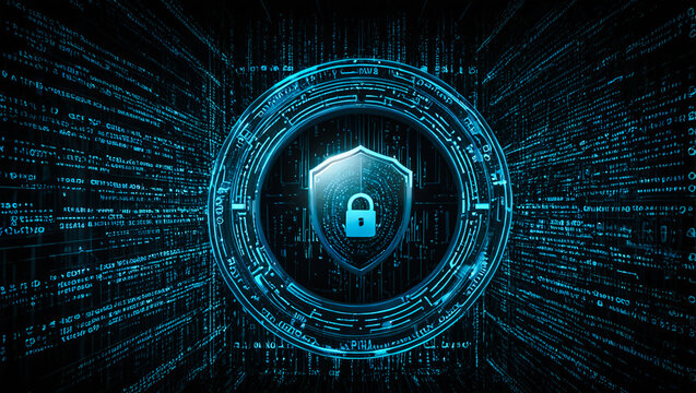 Digital security interface with shield icon for safe communications