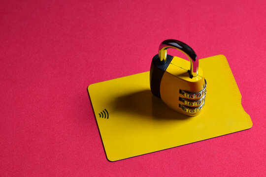 Safe online payment and electronic money transfer security. Pay with digital technology. Man using credit card and laptop to login to internet bank. Financial safety to prevent scam, threat and fraud.