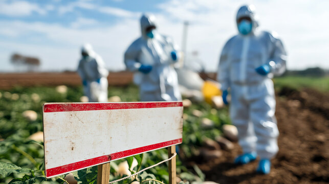 Group of industrial workers in protective suits and masks, showcasing safety measures in a high-tech facility, emphasizing health and security protocols.