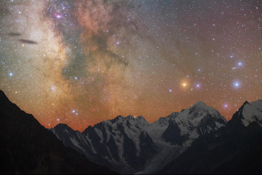 Space shuttle columbia with southern cross constellation prior sunrise, sts-075, 1996