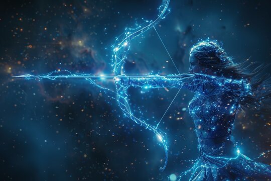 Astrological concept: Sagittarius zodiac sign adorned with intergalactic motifs, ideal for astrology enthusiasts