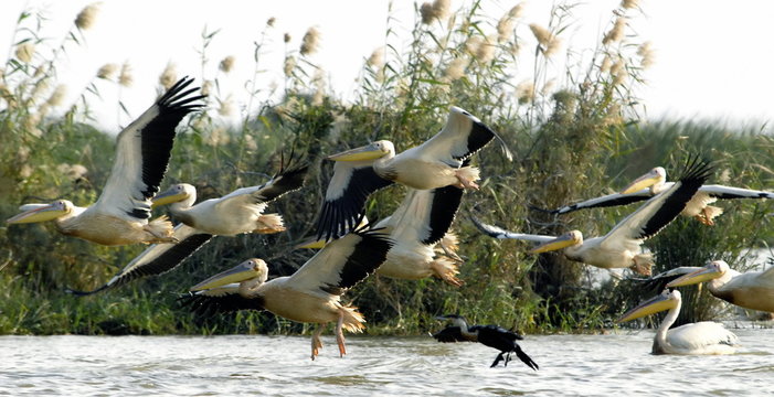 Saint-Louis du Sénégal, envol des pélicans, fleuve Sénégal, Afrique