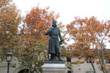 Statue du roi de France Louis IX surnommé "Saint Louis" dans le village de Aigues Mortes - Département du Gard - Région Occitanie - France