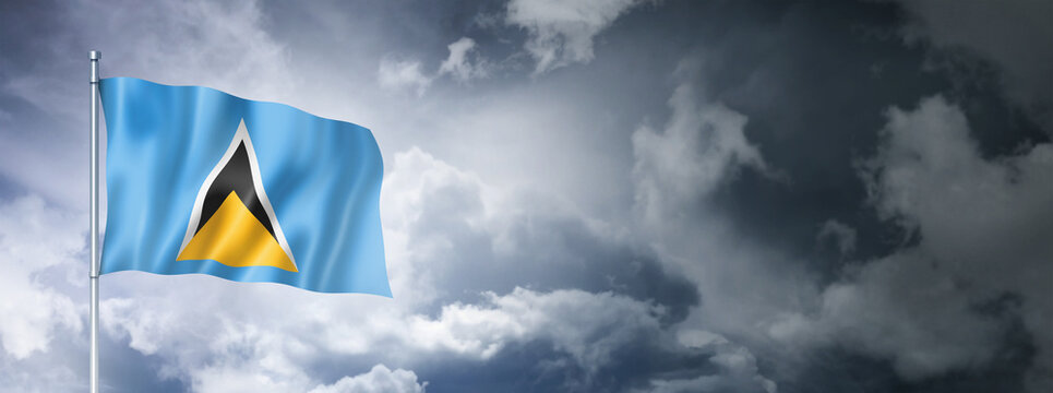 Saint Lucia flag on a cloudy sky