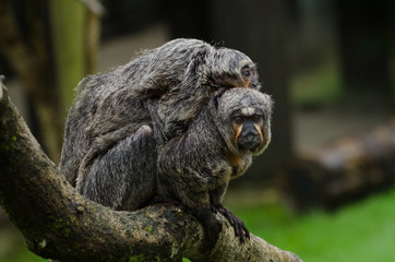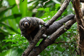 Beautiful view to White-nosed Saki monkey (Chiropotes albinasus)