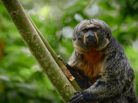 Saki Monkey, Pithecia, Amazonian Monkey Close Up Portrait in Wildlife