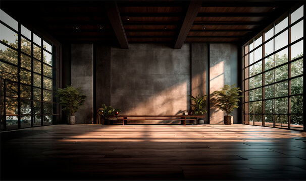 Sala vacía con ventanal - interior con luz natural - habitación estilo industrial