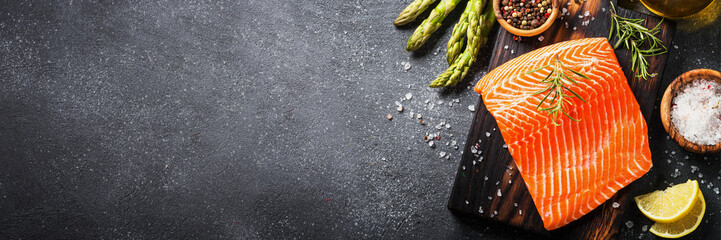 Salmon fillet with ingredients for cooking -  fresh vegetables a
