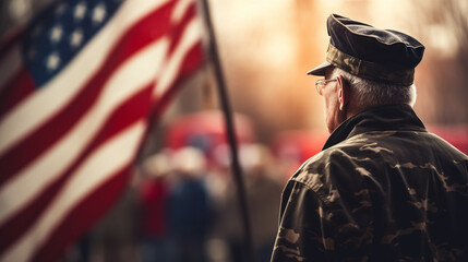 Happy veterans day greeting with american flag background