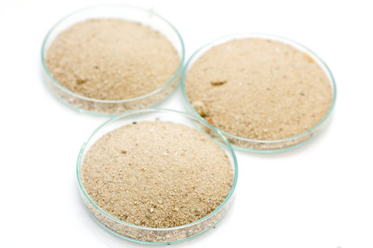 Geology science laboratory research concept, sample test analysis of nature dirtied ground in environment and ecology experiment, agriculture agronomy material to working with scientific equipment