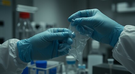 Close up of sample handling with gloves in the laboratory
