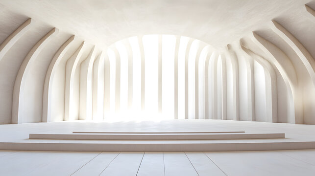 un escenario dentro de un cuarto o habitacion en colores claros vacio con espacio para diseño o publicidad