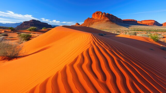 Coral Pink Sand Dunes with Red Rock Formations.
