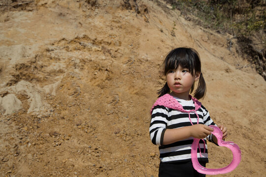 Cute little girl on a sand hill background