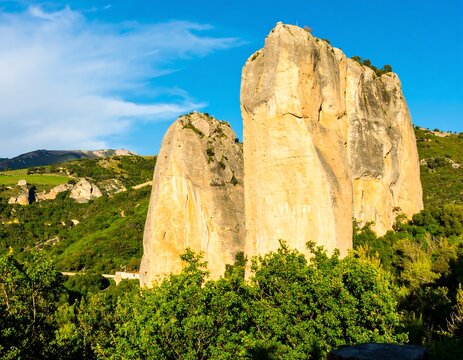 Dramatic sandstone cliffs illuminated by sunlight in national park