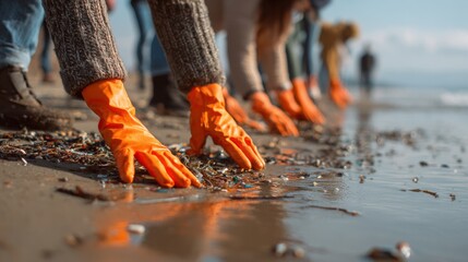 Children playing in wet sand on a sunny beach. Two children are engaged in building a sandcastle on a sunny beach afternoon. They use their hands to mold the sand and create shapes. Summer background