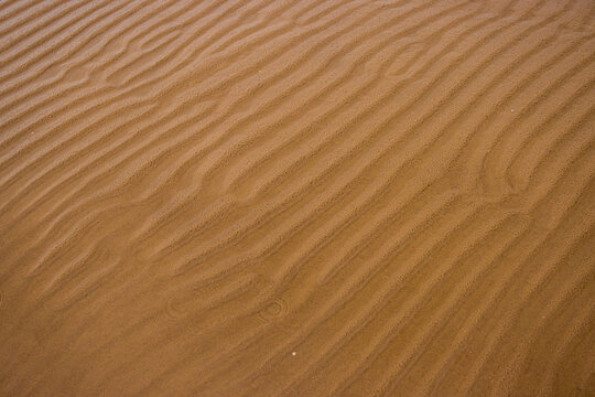 Blue sea ocean water wave on golden sand. Flat lay for vacation advertising, travel agency, holiday sales and backgrounds and backdrops with space for text