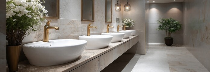 Modern school bathroom sinks with stainless faucets