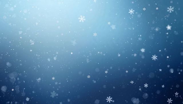 Falling snowflakes drifting over cool blue gradient background with soft bokeh lights