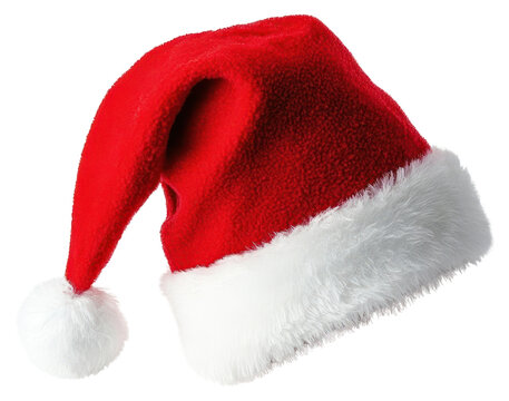 Red cowboy fancy hat with white fur trim and black belt isolated on white background with clipping path. Perfect for Christmas parties, costumes, or festive decoration PNG File.