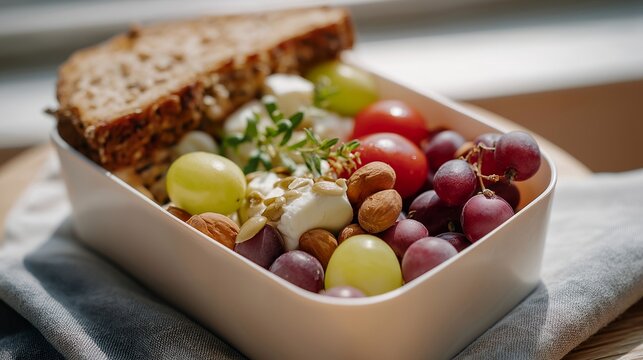 A lunchbox packed with high-fiber foods for work or school, including beans, whole fruits, and seeds, promoting satiety and mindful eating. cinematic color correction, natural uneven lighting yet